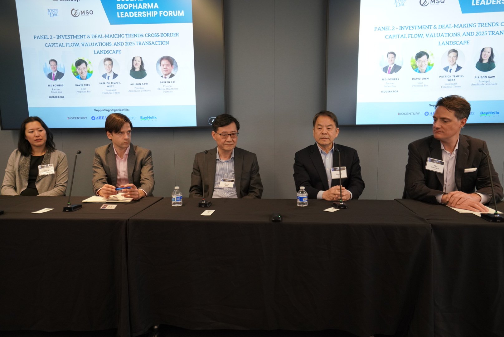 Moderated by Ted Powers, Partner, Jones Day, the panel brought together perspectives from venture capital, company leadership, and financial media. Panelists included David W. Shen, CEO, Propeller Bio, Patrick Temple-West, Journalist, Financial Times, Allison Gaw, Principal, Amplitude Ventures, Darren Cairns, Founder, Sherpa Healthcare Partners (夏尔巴投资).