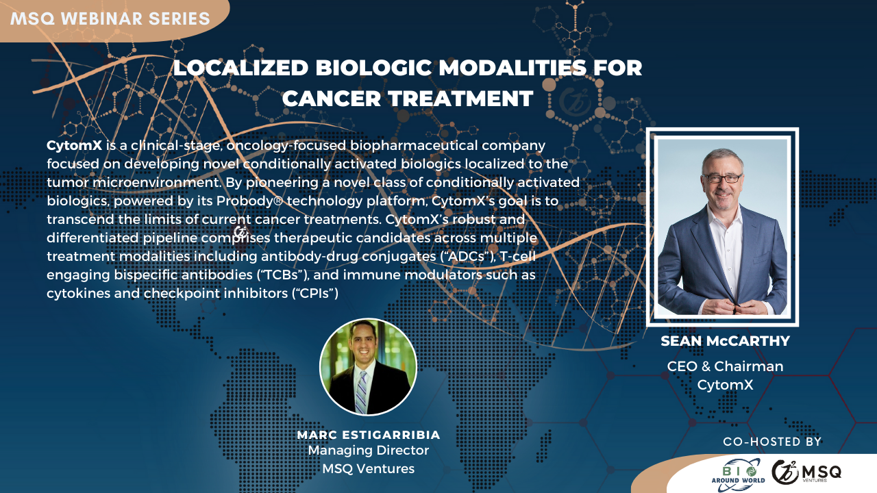 Dr. Sean McCarthy, CEO and Chairman of CytomX Therapeutics shared insights into the company's journey, platform technology, partnerships, and long-term vision. CytomX Therapeutics has established itself as a pioneer in localized biologic therapies, particularly in the field of oncology. Their proprietary Probody® therapeutics are designed to outsmart cancer by exploiting the unique conditions of the tumor microenvironment by localizing treatment in the tumor and limiting activity in healthy tissue. This approach aims to maximize therapeutic efficacy while minimizing side effects and enable new combinations of drugs previously not possible due to toxicities.